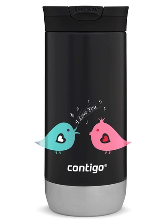 Kubek termiczny na kawę Contigo Huron 2.0 470ml - Ptaszkowe love - Czarny